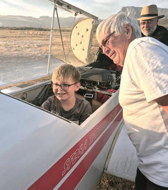 ANRU Erasmus (11) hier afgeneem in die tweesitplek sweeftuig saam met sy oupa Hannes en oom, Zulch Conradie.