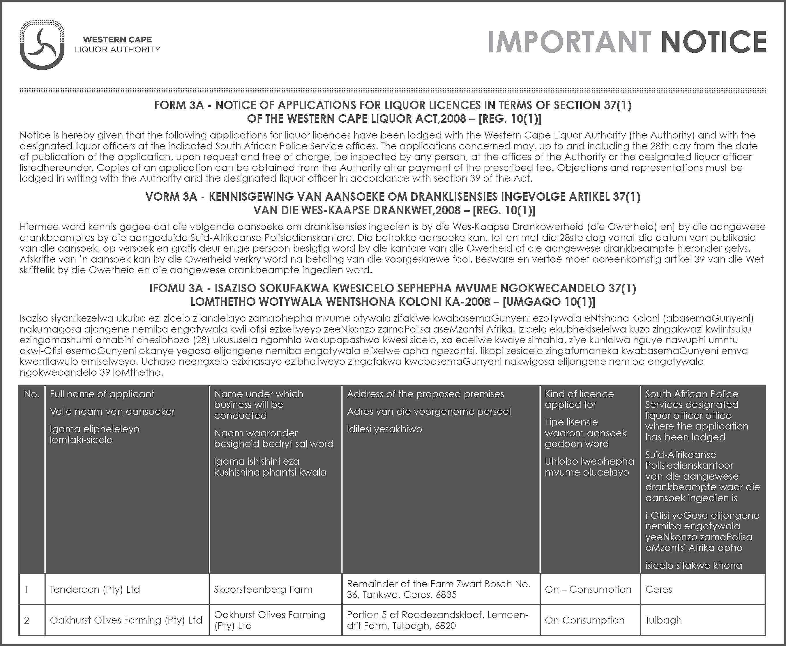 SLUITINGSDATUM VIR A ANSOEKE: 25 Januarie 2026