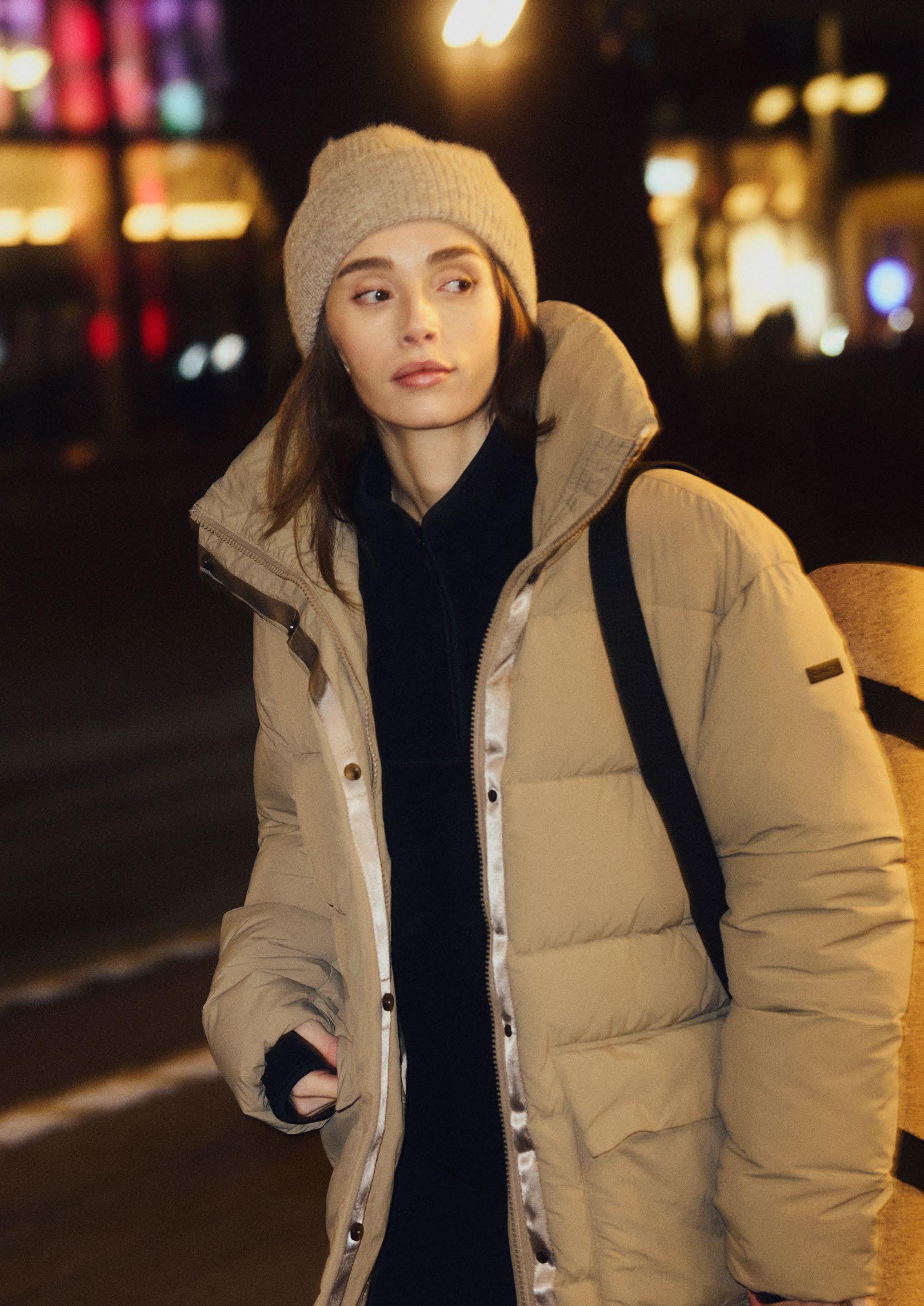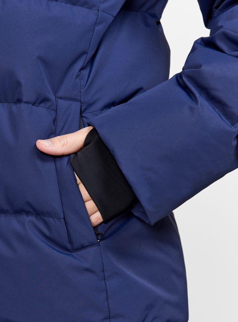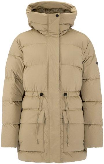 Jackan Àr sydd i ett vattenavvisande yttertyg och utrustad med ett tjockt dunfoder som ger utmÀrkt vÀrme nÀr temperaturen sjunker. Den har dessutom tvÄ stora fickor för att vÀrma hÀnderna, en skyddande huva samt justerbar midja för optimal passform och en fin silhuett. Plaggets höftlÄnga konstruktionen ger extra skydd och komfort under kalla vinterdagar. Ett perfekt val för sÄvÀl vardagsÀventyr som mer formella sammanhang.