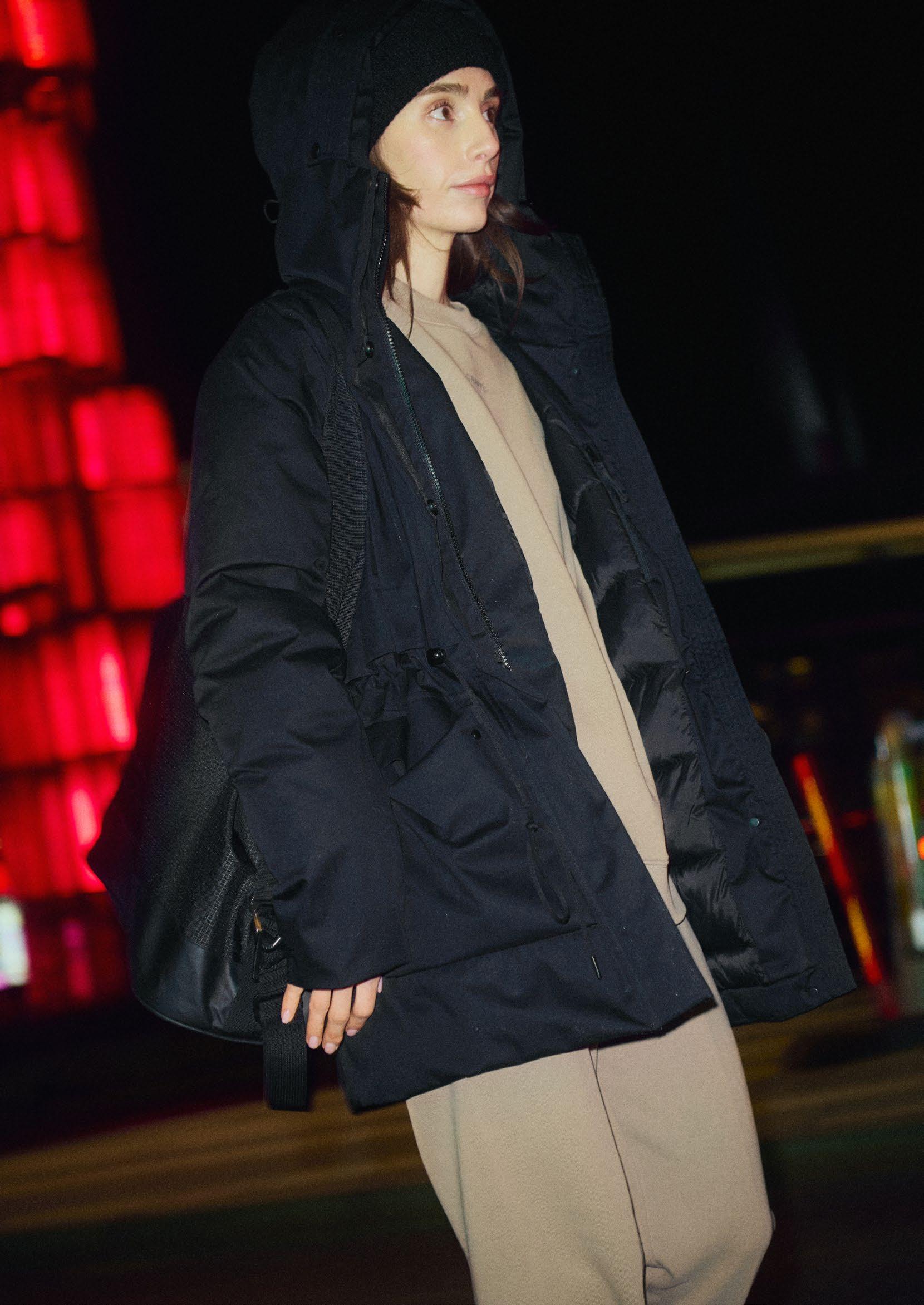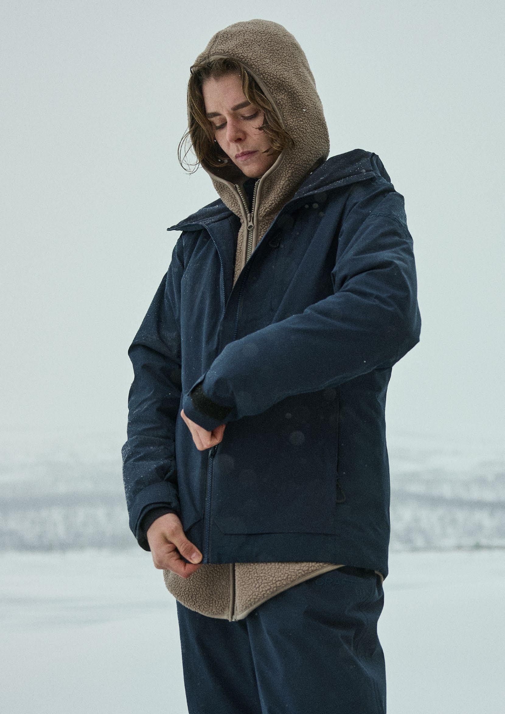 Jackan Àr sydd i ett vattenavvisande yttertyg och utrustad med ett tjockt dunfoder som ger utmÀrkt vÀrme nÀr temperaturen sjunker. Den har dessutom tvÄ stora fickor för att vÀrma hÀnderna, avtagbar huva och justerbar dragsko nedtill. Ett perfekt val för sÄvÀl vardagsÀventyr som mer formella sammanhang.