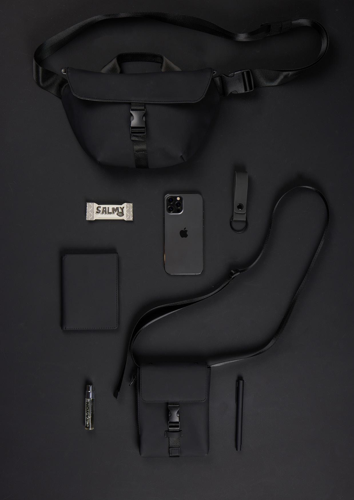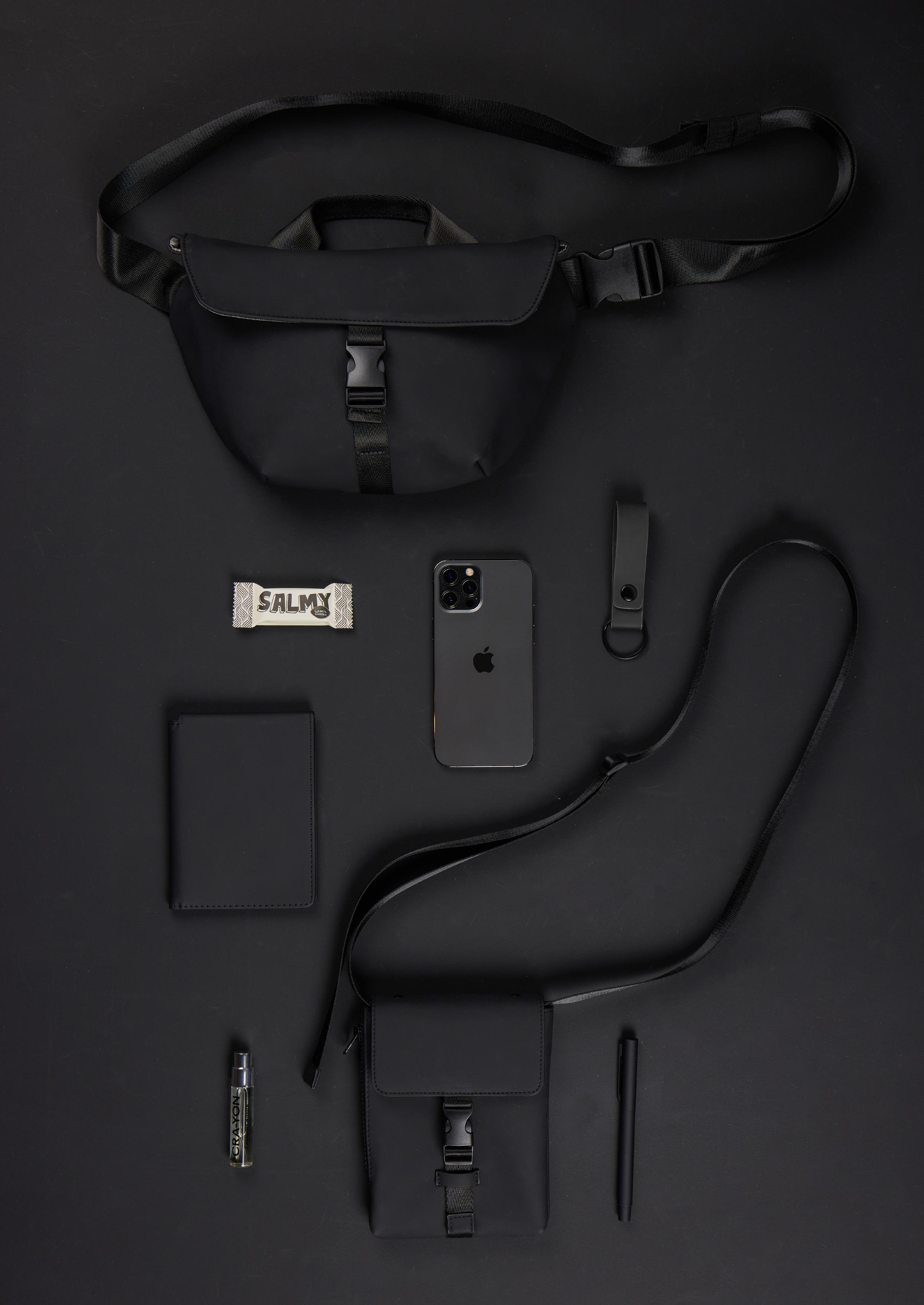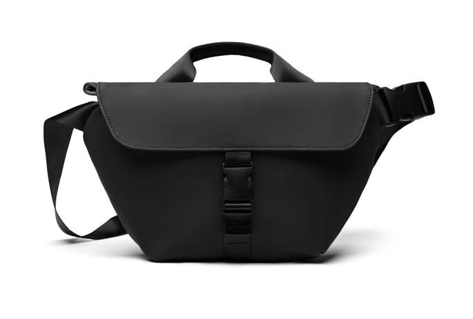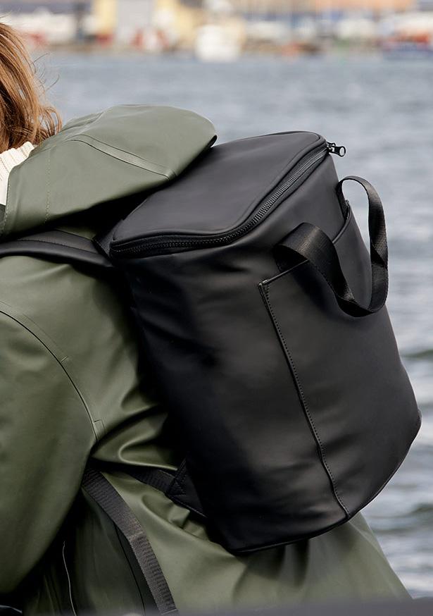 Laget av resirkulerte materialer • Lett å ta med seg • Stilrent PU-materiale • Vannavstøtende • Bærestropp