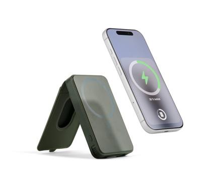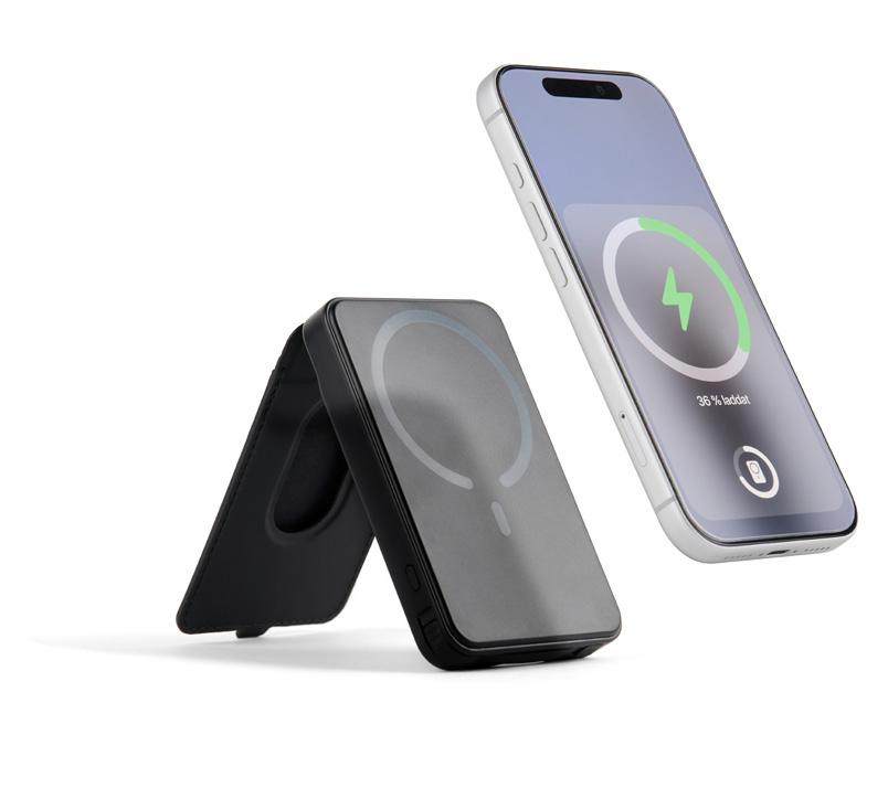 Resirkulert PU • Total utgangseffekt 15 W • Lader opp telefonen din én gang • Trådløs lading • Trådløs utgangseffekt 15 W • Støtter magnetisk lading • USB-C-utgang • USB-C-inngang • Ladeindikator • Godkjent som håndbagasje • Hurtiglading • Ladekapasitet for nettbrett