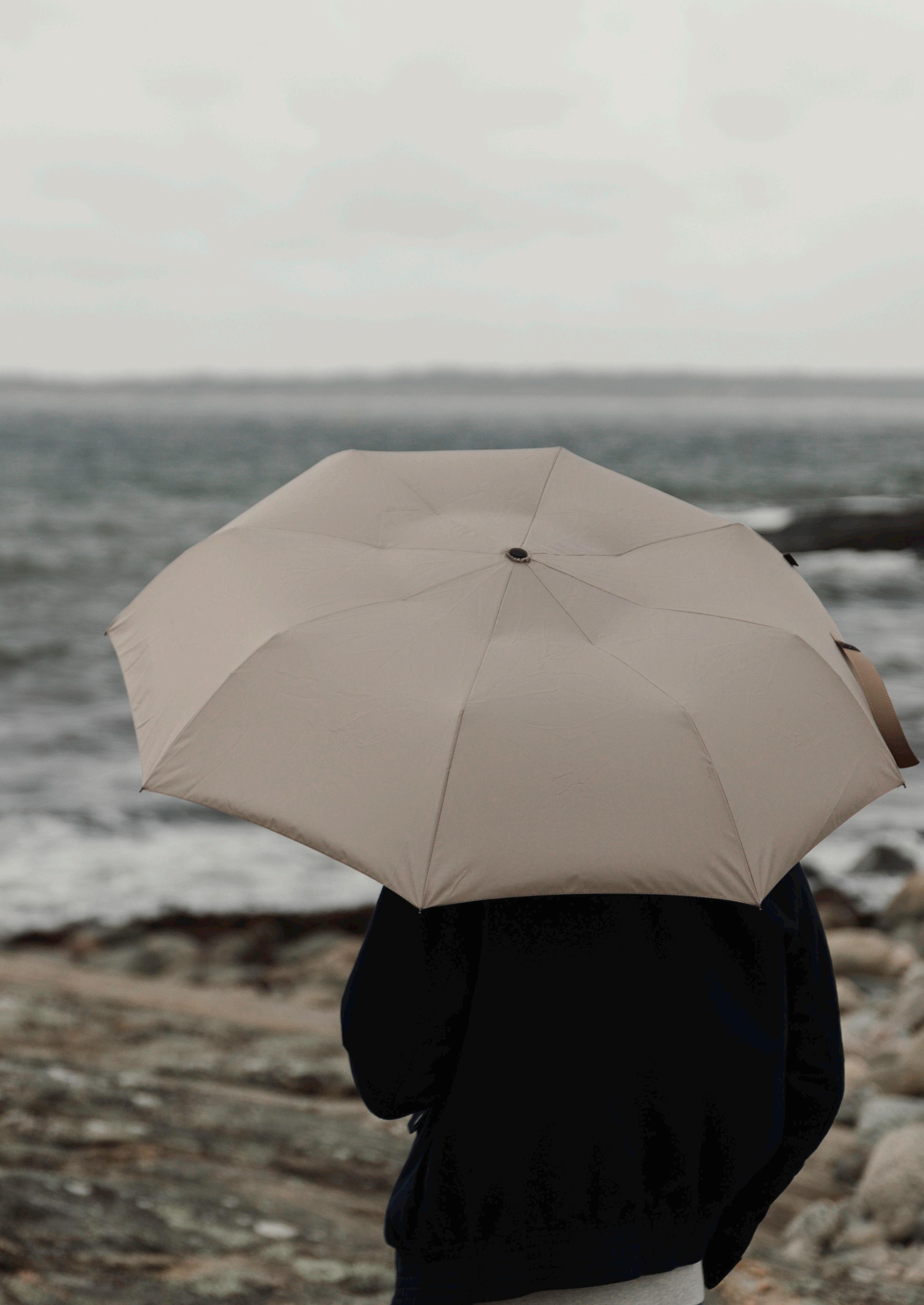 Åpnes automatisk med et enkelt trykk på knappen • Laget av sertifiserte resirkulerte materialer • Mykt PU-etui • Stormsikker
