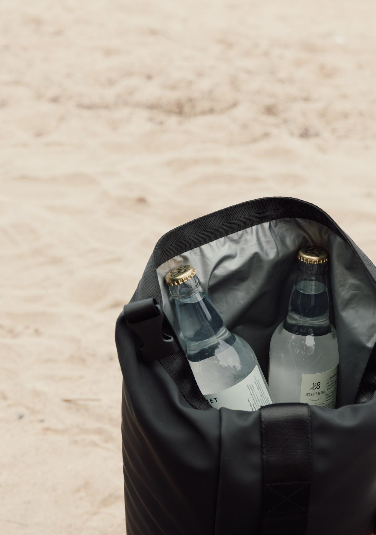Vannavstøtende stilrent PU-materiale • Stilrent PU-materiale • Frontlomme • Enkel tilgang til åpning • Komfortabel stropp • Stor kjølebag