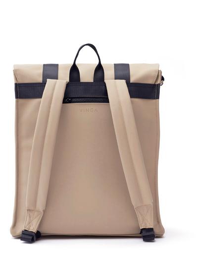 Vannavstøtende • Stilrent PUmateriale • Kvalitetsglidelås på både hovedrom og lomme i front • Justerbare stopper • Elegant og minimalistisk design