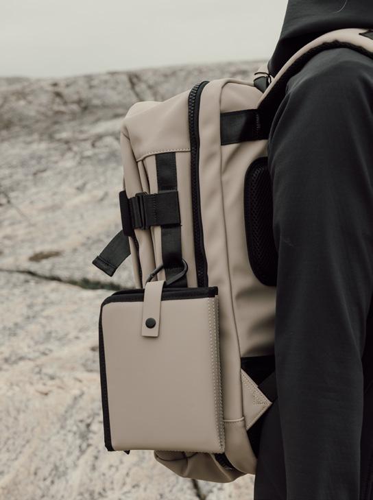Vannavstøtende • Stilrent PUmateriale • Effektiv lagring og organisering • Glidelås av høy kvalitet