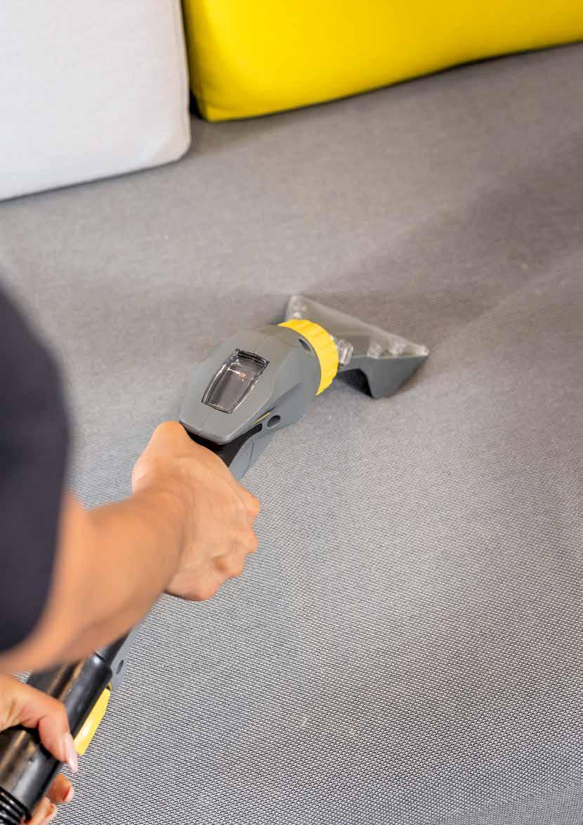 Kraftig, brukervennlig, bærbar og batteridrevet møbelrenser for profesjonell flekkfjerning og dyprensing av tekstiler. Sterk sugeevne sørger for svært rask tørketid.
