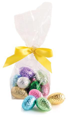 2 stk. Chokoladerørepinde & Påske Mallows, 156 g. Pakket i cellofanpose m/ gul sløjfe