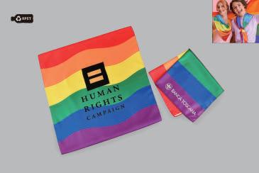Skjerfet er fjærlett, pustende og utrolig behagelig å ha på seg. Det flotte regnbuedesignet på den ene siden er laget for å vare, helt uten å falme eller sette lukt. Leveres elegant pakket i en hvit, resirkulert kartongmappe med vindu – perfekt for direkte utdeling eller som gave! Mulighet for tilpasset digitalt fargetrykk.