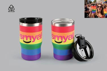 Fremstilt av RCS-sertifisert resirkulert 304 rustfritt stål med et praktisk vippelokk i AS-plast. Slitesterkt regnbuedesign som garantert blir lagt merke til – falmer ikke og setter ikke smak. Rustfri, lekkasjesikker og helt trygg i bruk. Sprutsikkert lokk for en smidig drikkeopplevelse. Holder utmerket på temperaturen, enten innholdet er varmt eller kaldt. Din perfekte følgesvenn på farten! Mulighet for fargetrykk over hele koppen.