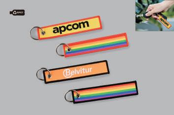 med et innvevd regnbuedesign. Resultatet er en lett og utrolig slitesterk nøkkelring der fargene ikke falmer.