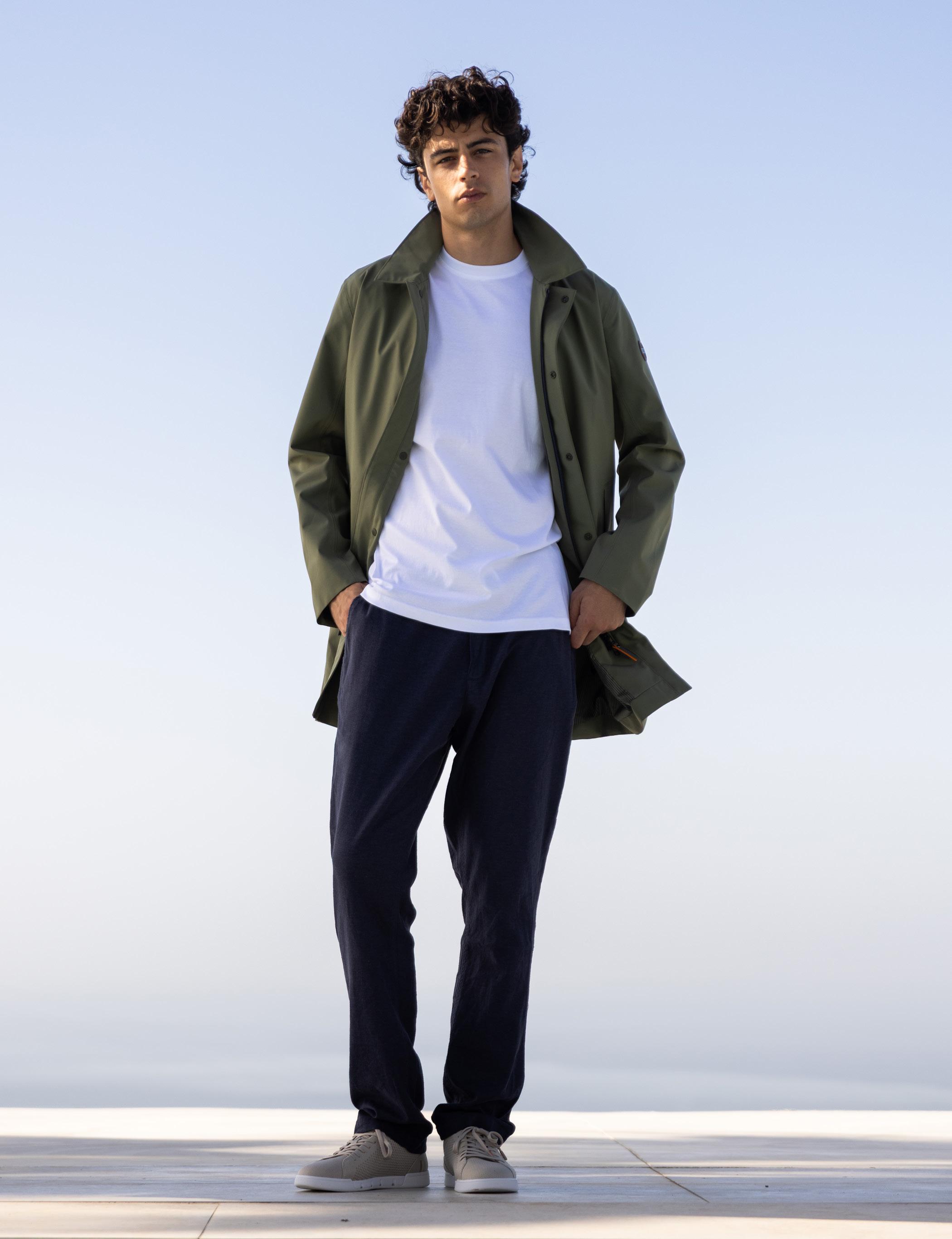 Stockholm Mac er SWIMS’ moderne tolkning av den klassiske Mac- og Car coat-silhuetten En vanntett, lett og allsidig byfrakk med en noe kortere og videre passform, designet for helårsbruk i urbane miljøer
