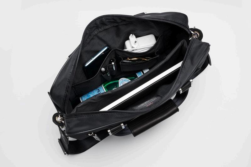 Den allsidige Hybrid Bag kanbæressom ryggsekk, brukes somstresskoffert, eller som skulderveske. Den er laget av vannavstøtende luksusnylon med solide D-ringer, metallklips og skinnkanter. Det utvidbare interiøret har flere lommer, og selvfølgelig en egen lomme til din bærbare PC.