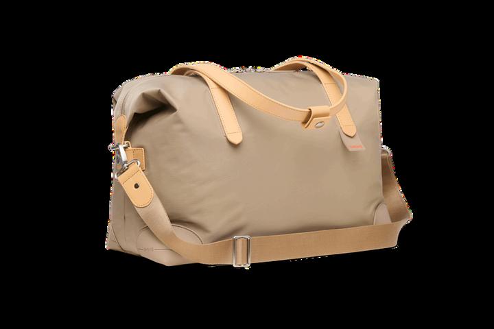 Denne baggen er en større utgave av vår bestselger 24H Holdall bag, så med denne får du plass til alt du trenger til helgeturen. Den stilige og praktiske baggen holder vær og vind ute med slitesterkt, vannavvisende nylonstoff med vanntett glidelås og forsterkede hjørner Baggen har lange lærhanker og en avtagbar skulderstropp i nylon. Baggen rommer 50 liter, den er fôret og den har tre innvendige lommer, to åpne og én stor lomme med glidelås.