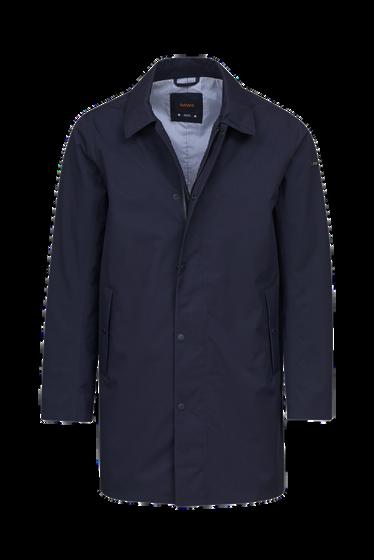 Frakken er konstruert med et 2-lags vanntett ytterstoff og et separat fôr. Den laminerte membranen gir svært god pusteevne, og alle sømmer er tapet for full beskyttelse mot vær og vind. Ytterstoffet er en helmat, myk, lerretsvevd polyester med mekanisk stretch – uten elastan – som gir frakken et naturlig fall og et raffinert uttrykk.