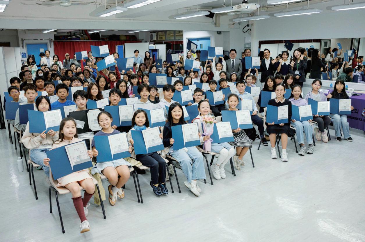 이날 시상자로 참석한 탁연균 이사장은 한글을 배우 는 학생들의 노력을 격려하며, 한글이‘마음을 전하는 선물’이자 정체성의 핵심임을 강조했다. 아울러 홍콩한 인회는 앞으로도 홍콩한국토요학교와 학생들을 적극적 으로 지원할 것을 약속했다.