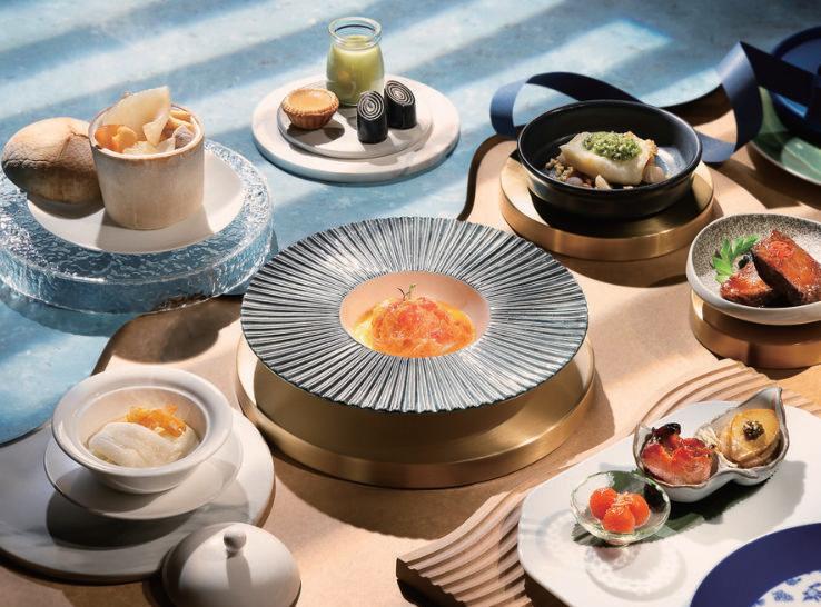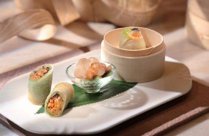 프리미엄 제철 해산물과 독창적인 딤섬 해산물 요리로는 서호주산 랍스터를 활용한‘라이브 웨스턴 오스트레일리아 랍스터’와 사천 후추로 신선함 을 살린‘라탄 페퍼 가루파 찜’이 준비되어 있다. 특히 바 삭한 누룽지 위에 캐나다산 관자와 푸아그라를 올린‘관 자 푸아그라 누룽지 구이’는 이색적인 조화를 선사한다. 딤섬 메뉴 중에는 시금치로 색을 낸 계란 흰자 위에 가 루파와 새우로 만든 만두를 올린‘가루파 찜 만두’가 예 술적인 플레이팅으로 눈길을 끈다.