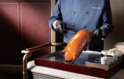 전설적인 레시피로 탄생한 ‘시그니처 북경오리’ 이곳의 대표 메뉴인‘시그니처 로스트 베이징 덕 (Signature Roasted Peking Duck)’은 하얏트만의 비법 레 시피로 요리된다. 45일간 키운 오리를 72시간 동안 건 조한 후 특수 제작된 오븐에서 구워내어 바삭한 껍질을 완성한다. 셰프가 테이블 옆에서 직접 카빙 서비스를 제 공하며, 바삭한 껍질과 부드러운 가슴살, 육즙이 풍부한