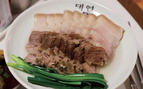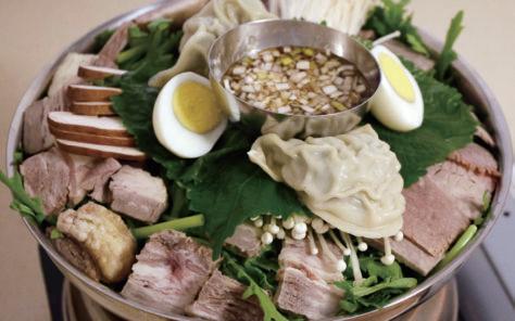 투명한 주방 유리 앞에는 큰 가마솥이 있는데 푹 고아 진 수육이 항시 대기 중이다. 부드러운 소고기수육과 돼 지고기수육 모두 메밀면과 잘 어울린다.