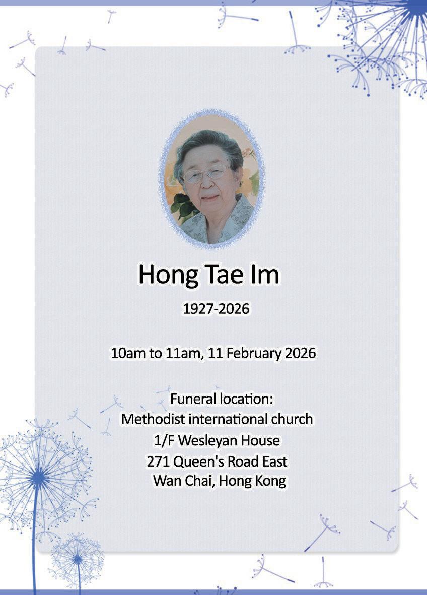 홍콩우리교회 홍태임 권사님께서 100년의 세월동안 이 땅에서 장수의 삶을 사시다가 2026