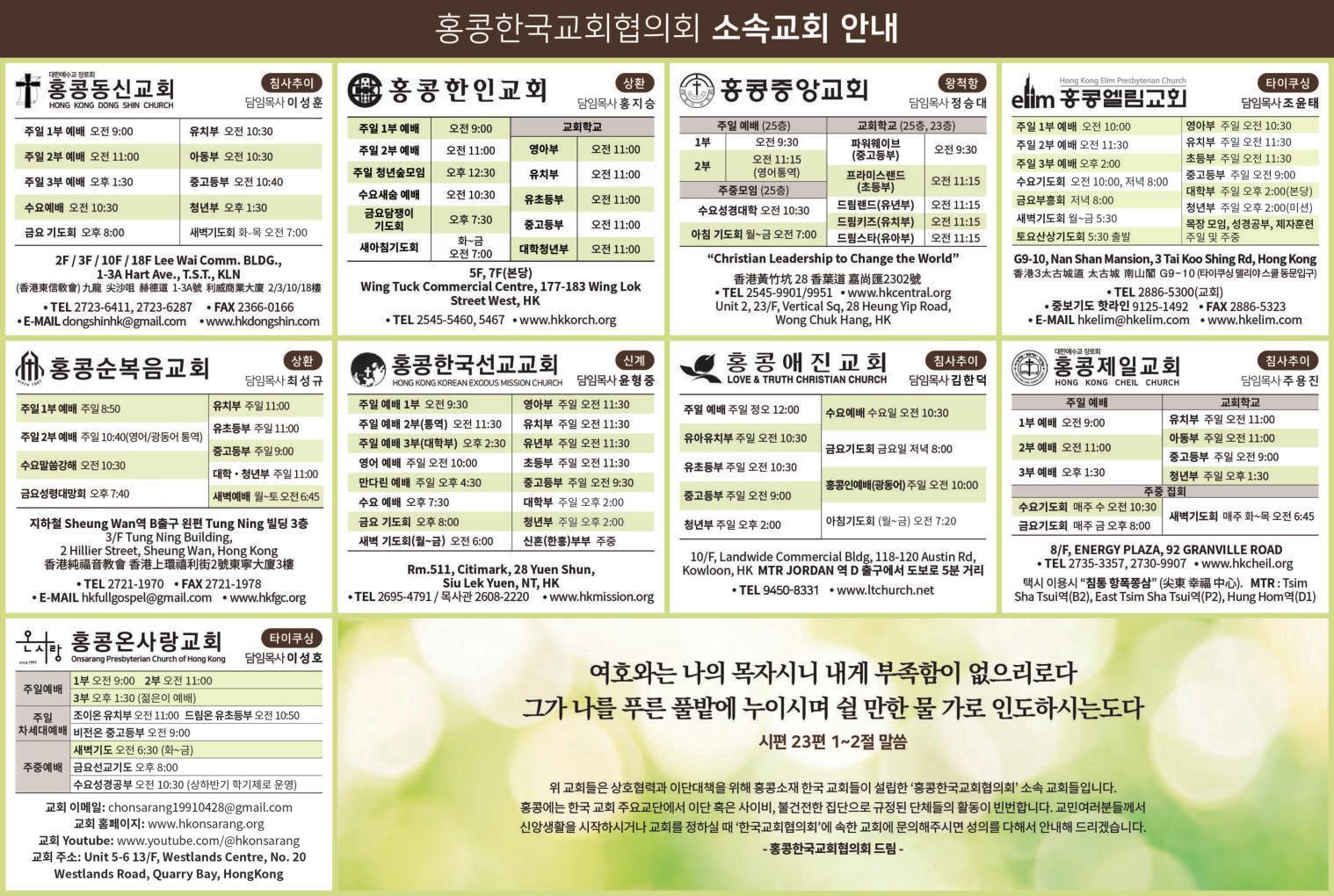 송을 했으며, 봉헌 기도는 정승대 목사(홍콩중앙교회)가