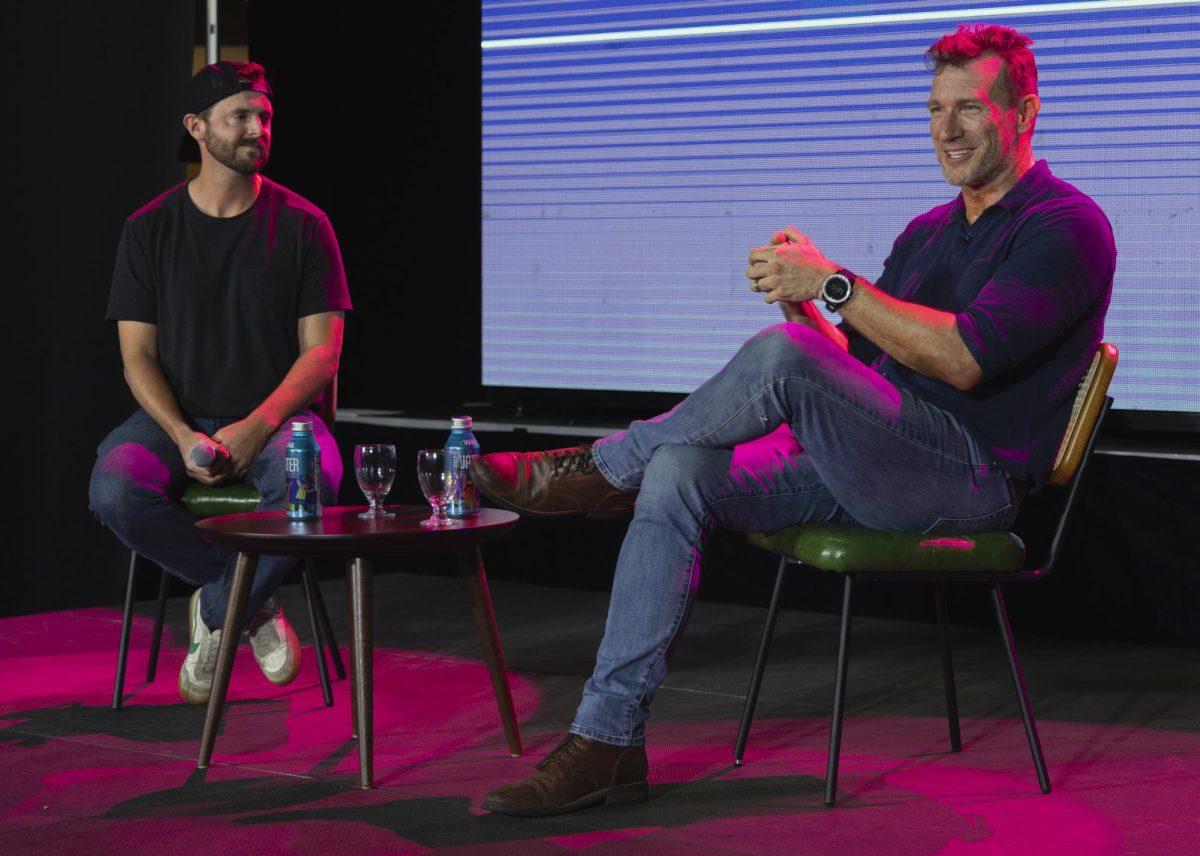 Andrew Swanson, owner of Forerunner and Q&A MC (left), and Tom O’Connell, stunt double, actor and producer (right), answer questions during the Q&A at This Is The Way Stagecraft, Stunts & Fighting On Screen at the WKU Innovation Campus on Friday, September 27, 2024. Photo by Ian Pitchford.