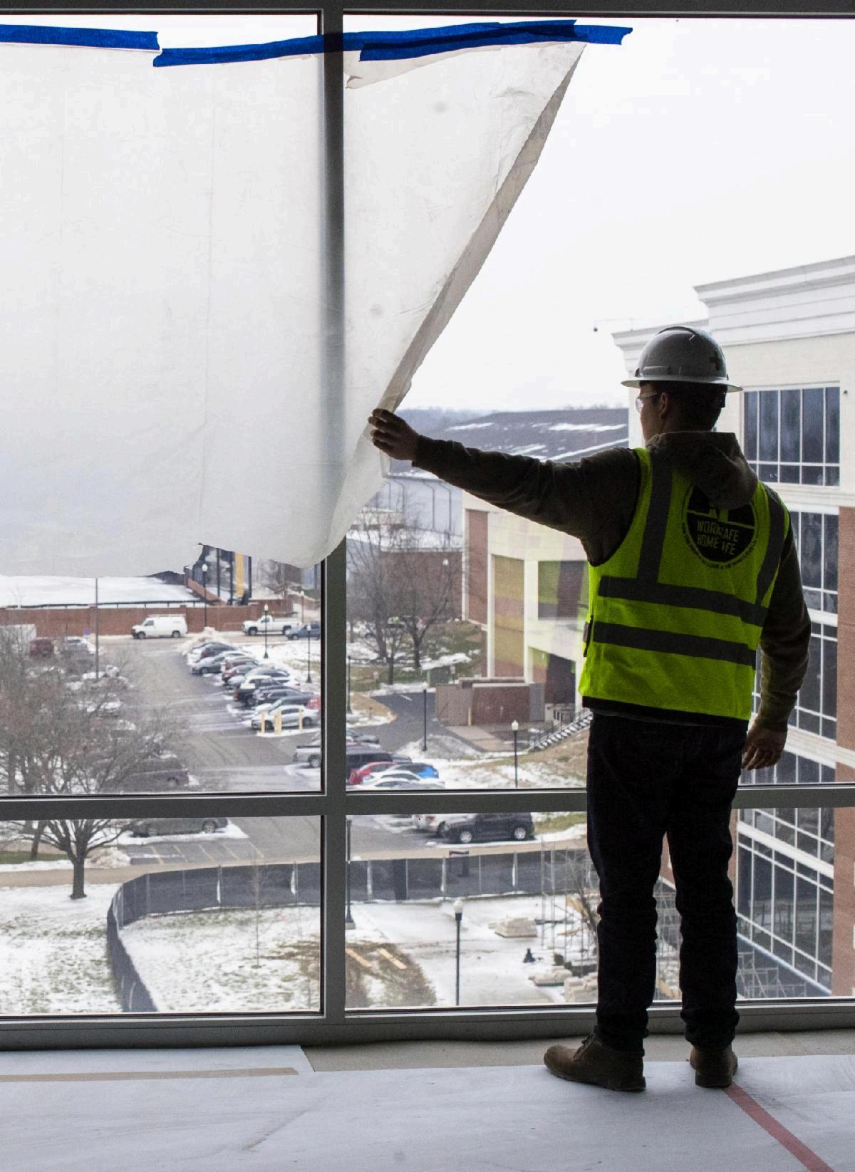 Los contratistas continuaron trabajando durante las vacaciones de invierno para mantener las reparaciones de los edificios Regents y Normal dentro del calendario previsto para su reapertura en 2027. (Von Smith)