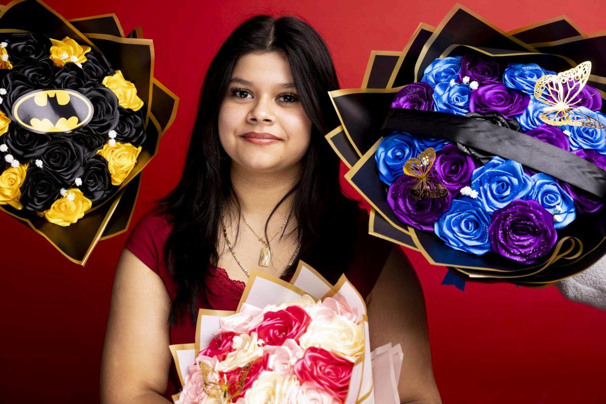 Kaylee Rodríguez, estudiante de décimo grado, es propietaria de su propio negocio local de ramos de flores personalizados. (Gabriel Milby)