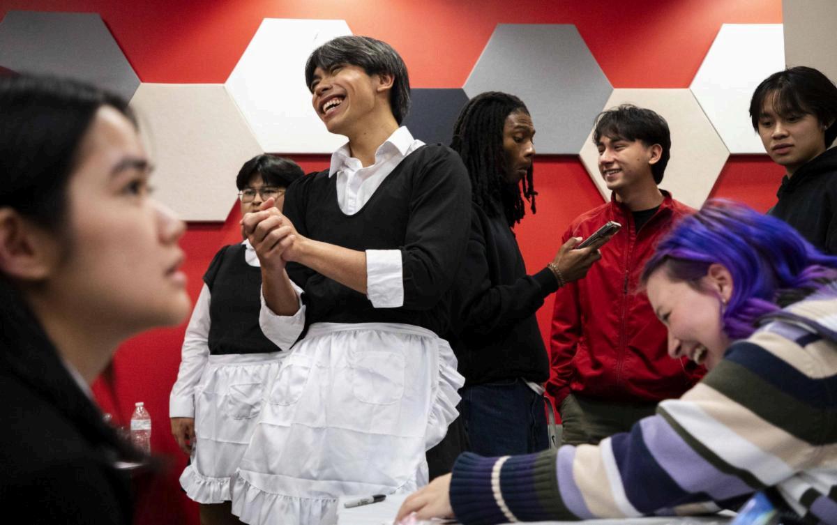 Jason Le, estudiante de último año de enfermería, se ríe después de perder al póquer durante el Maid and Butler Cafe de laAsociaciónAmericanaAsiática de la WKU, celebrado en el Downing Student Union el jueves 12 de febrero de 2026. Le lleva dos años siendo miembro de la asociación. Su evento favorito de laAAAes el festival de los faroles. (Jacob Sebastian)