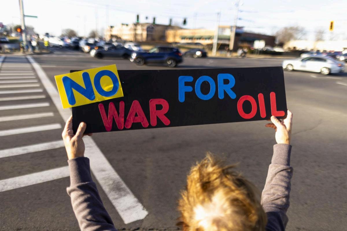 Passing drivers honked their horns and revved their engines behind thumbs up and middle fingers as community members protested the United States’military action in Venezuela.