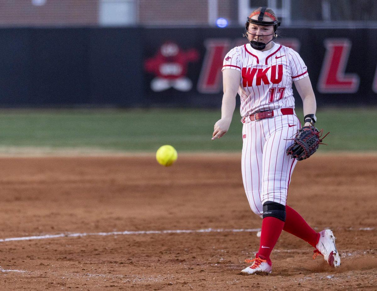 WKU right handed pitcher Rylan Smith (17) pitches the ball during WKU Softball’s game against the University of Louisville Cardinals in Bowling Green, Ky. on Tuesday, March 25, 2025.(Eli Randolph)