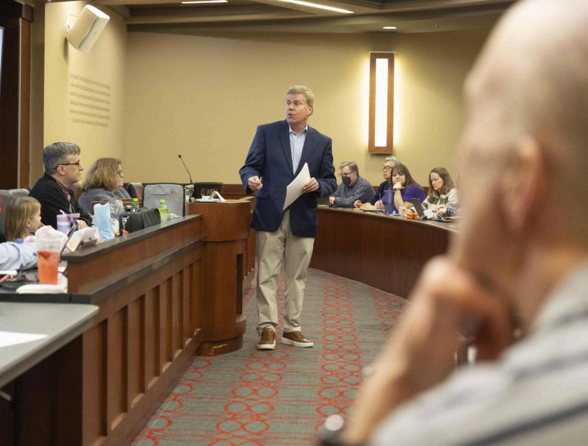 Director ofAthletics Todd Stewart provides insight to Faculty Senate members on what is to come for the athletic department at the Faculty Senate meeting on Thursday, Feb 19, 2026. (Corinne Tucker)