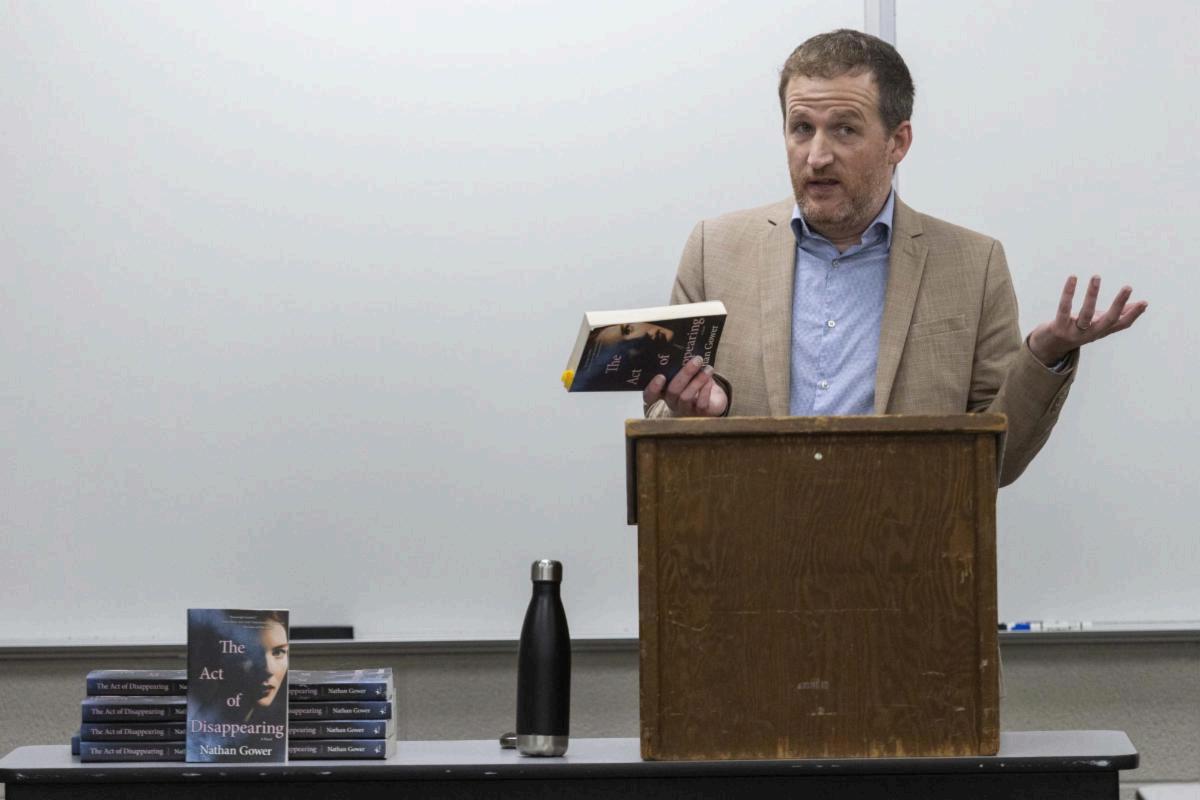 Gower guided listeners through parts of his historical fiction and mystery novel, “TheAct of Disappearing,” explaining how it weaves together themes of mental health and family dynamics, while still preserving the suspense of a historical mystery.