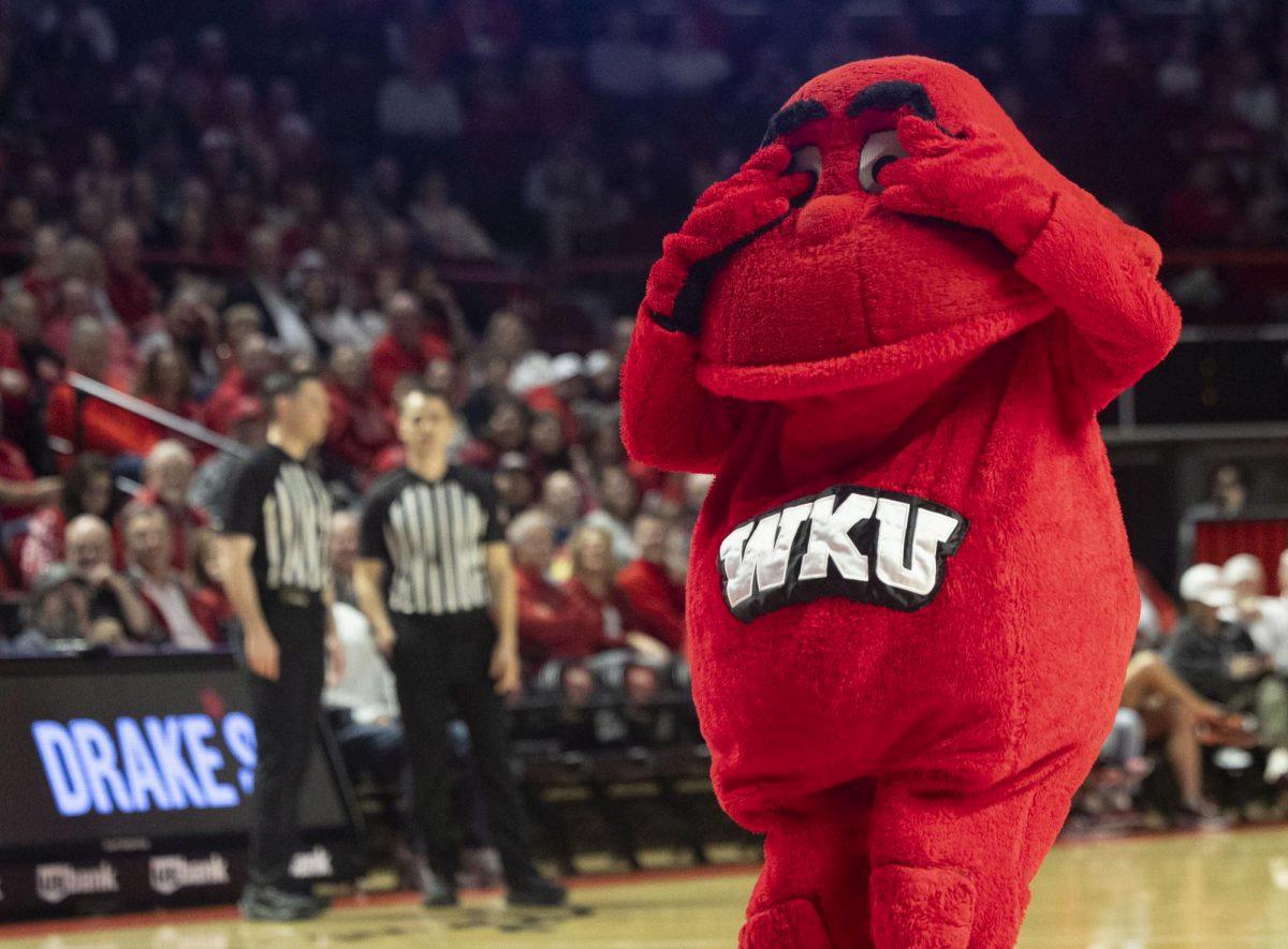 Western Kentucky University Hilltoppers take the lead at halftime 42-37 and continued to expand their lead early in the second half on Saturday, Feb. 14, 2026.(Kylee Holt)