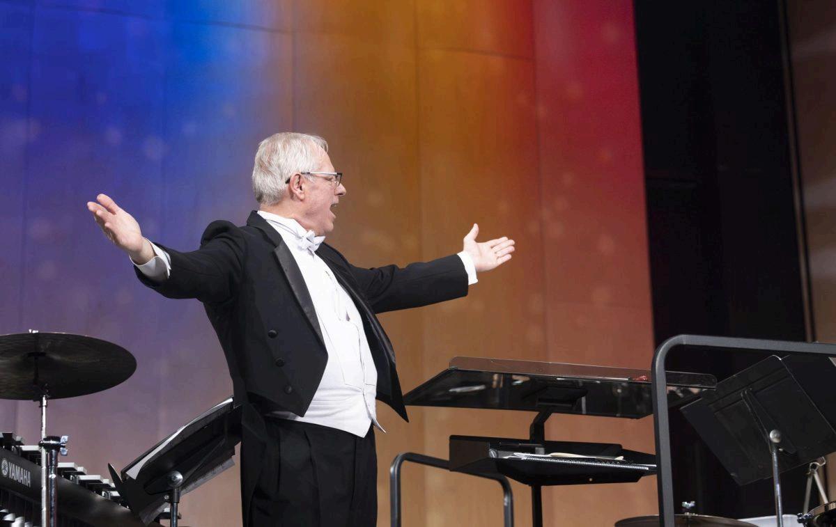 Director of Bands, Dr. Gary Schallert congratulates all the outstanding musicians that performed during the Symphonic and Wind Ensemble concert on Friday, Feb. 27, 2026 held in Van Meter Hall. Schallert says “bravo” to everyone involved.(Kylee Holt)