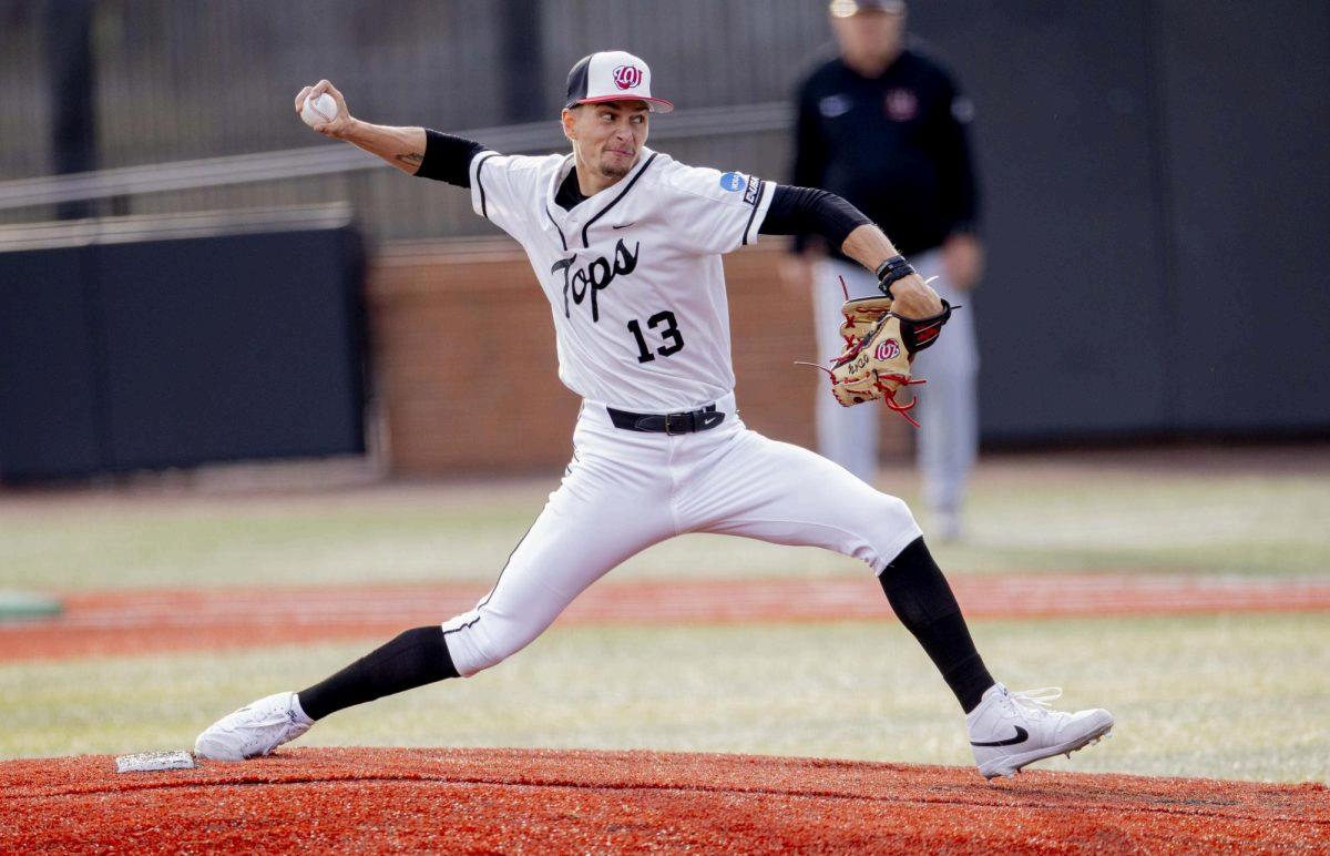 Western Kentucky Hilltopper’s right-handed pitcher Jacob O’Day (13) pitches the ball during WKU’s game against the Cincinnati Bearcats at Nick Denes Field on Tuesday, March 3, 2026. (Hallie Stafford)