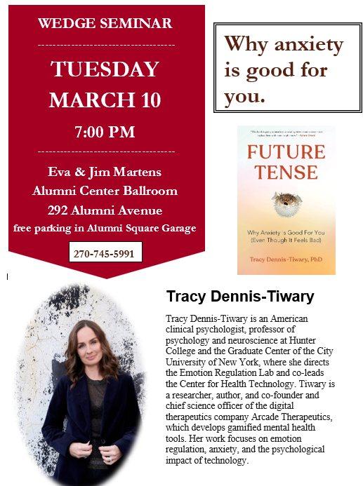 WKU will host clinical psychologist Dr. Tracy Dennis-Tiwary as a speaker for the university’s Wedge Seminar on Tuesday, with a presentation titled “Why anxiety is good for you.”