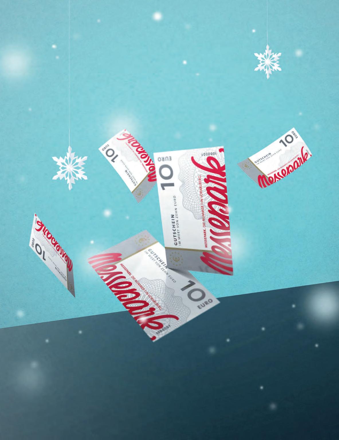 edesJahrinderVorweihnachtszeitstelltsichdieFrage: WasschenkeichmeinenMitarbeiternundtreuenKun den?UnserTipp:SchenkenSiedoppeltFreudemitdenbeliebtenMessepark-Gutscheinen.Dieseerfreuennämlich gleichzweiMal:beimErhaltundbeimEinlösen.Unddas Beste:DerBeschenktehatdiefreieWahl.