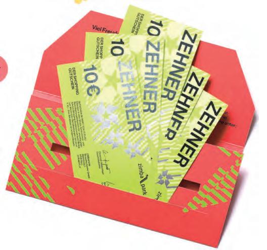 Erhältlichist„derZehner“beimBesucher-Service direktimZIMBAPARKObergeschoss.Außerdemkönnen dieGutscheinebequemunter www.zimbapark.at oder www.derzehner.atonlinebestelltwerden.