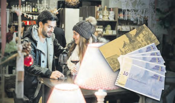 STADTMARKETINGHOHENEMS BescherenSieIhrenMitarbeitendeneinbesonderesErlebnis unddrückenSieIhreWertschätzungaus–diesesdoppelteGeschenkistmitdemHohenemserEinkaufsgutscheinmöglich.