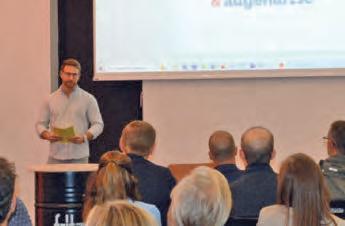 Am22.Septembertrafensichrund vierzigOptiker:innenundAugenärzt:innenzumNetzwerkeninder PostgarageinDornbirn.Denndiebeiden BerufsgruppenarbeitenineinemsymbiotischenVerhältniszusammen.„Wennsich dieMenschenhinterdenLeistungen kennen,istesleichterzielgerichteter miteinanderzuarbeiten,umaufdie BedürfnissederKund:innenundPatient:inneneinzugehen“,sindsichSimon Bitsche,ObmannderInnungderGesundheitsberufe,undDr.MartinTschann,FachgruppenobmannderAugenärzte.Denn dasobersteZielmüssestetsdasWohlbefindenunddieZufriedenheitderKund:innenbeziehungsweisePatient:innensein.
