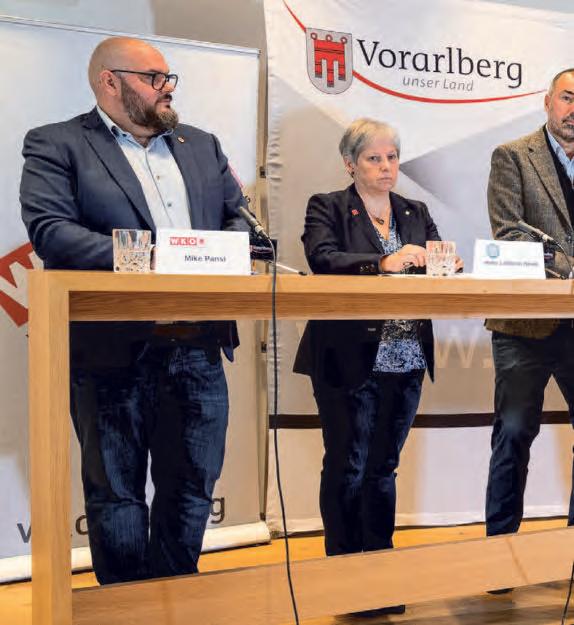 HerausgeberundMedieninhaber: WirtschaftskammerVorarlberg– Herstellung: „DieWirtschaft“BetriebgewerblicherArt, beide6800Feldkirch,Wichnergasse9,t05522305–382,presse@wkv.at,wko.at/vlbg Redaktion: Mag.HerbertMotter,LeiterAbteilungPresse(moh,DW380),NoraWeiß,MA(nw,DW383),SimonGroß,MAMA(gsi,DW381), Mag.JuliaSchmid(ju,DW496),Mag.AndreasDünser(ad,DW387),SabineBarbisch,BA(ba,DW384).