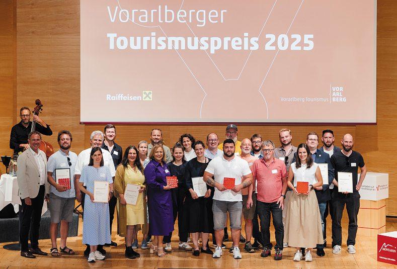 PrämiertwurdenInitiativen, diedas„Gastgeben auf Vorarlberger Art“ leben:InsgesamtgabesdreiHauptpreise,vierAnerkennungspreiseundeinen Sonderpreis indenKategorien „Betriebliche Leistungsträger“ und „Organisationen &Institutionen“. Die feierliche Preisverleihung fandam17. JunibeimTreffpunkt.Tourismus 2025im AngelikaKauffmann Saal in Schwarzenberg statt.DasPreisgeldstellten die Vorarlberger Raiffeisenbankenzur Verfügung.