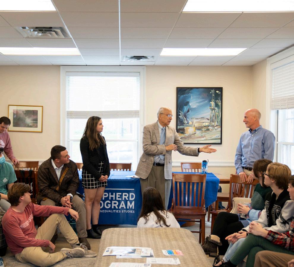 Shepherd is and always has been interdisciplinary, even transdisciplinary. Our world needs the skills and insights our students learn from every corner of campus—from biology, business, cognitive and behavioral science, economics, English, history, law, philosophy, politics, sociology, and more. And our world also needs the skills and insights our students learn beyond the university walls, from their work with local nonprofits and through summer internships all around the world.