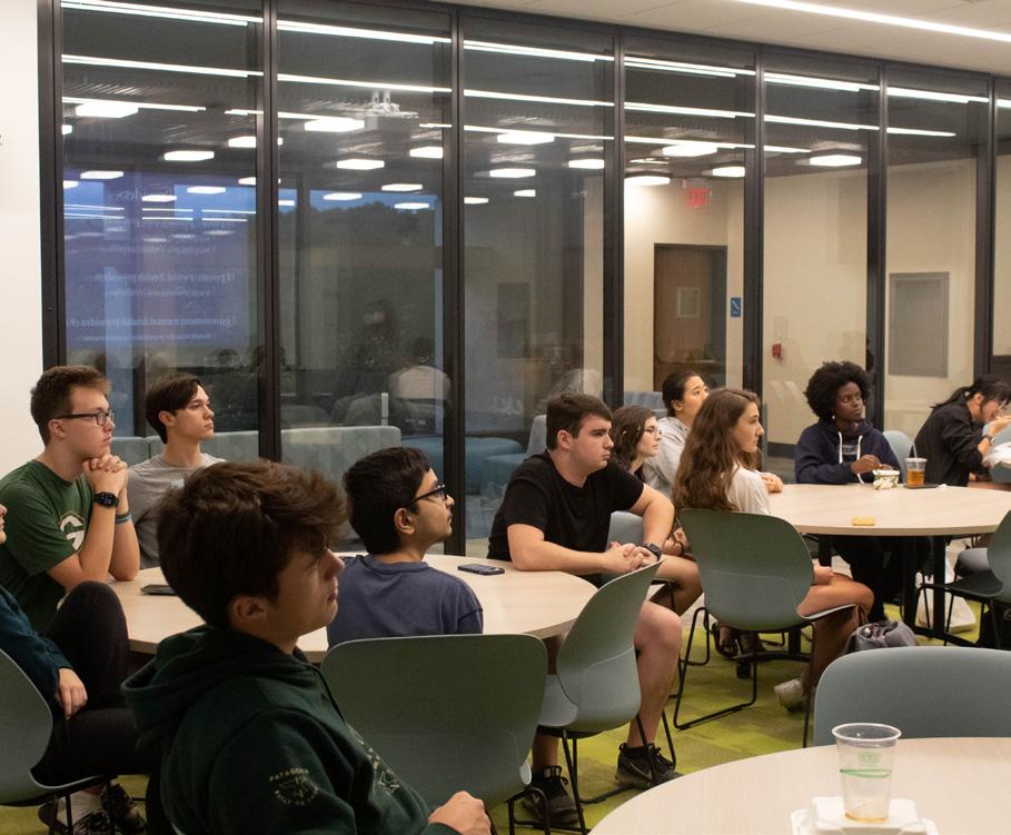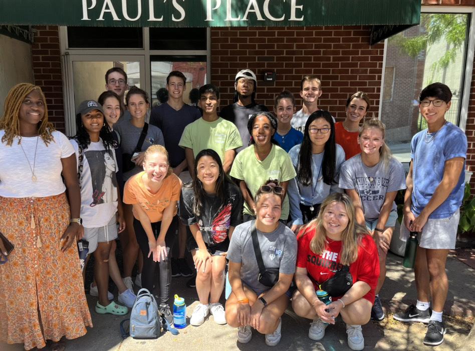 Volunteer Venture student leaders reflect with Professor Howard Pickett on the goals of the program.