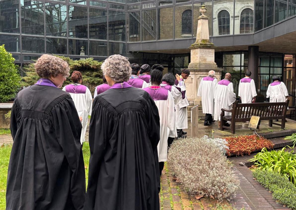 The choir and ministers leading the procession to John Wesley’s tomb on the back of Wesley’s Chapel, City Road, London