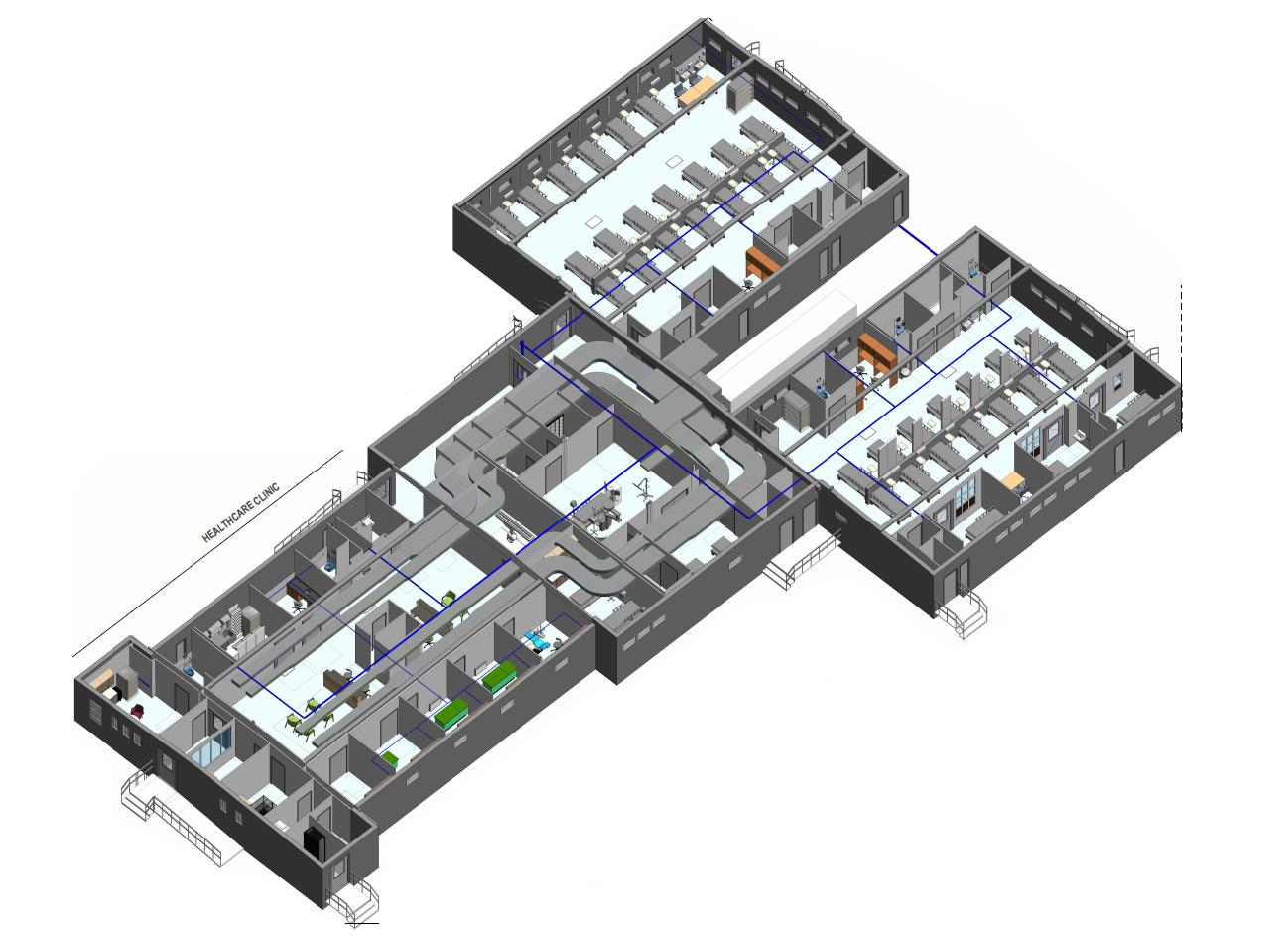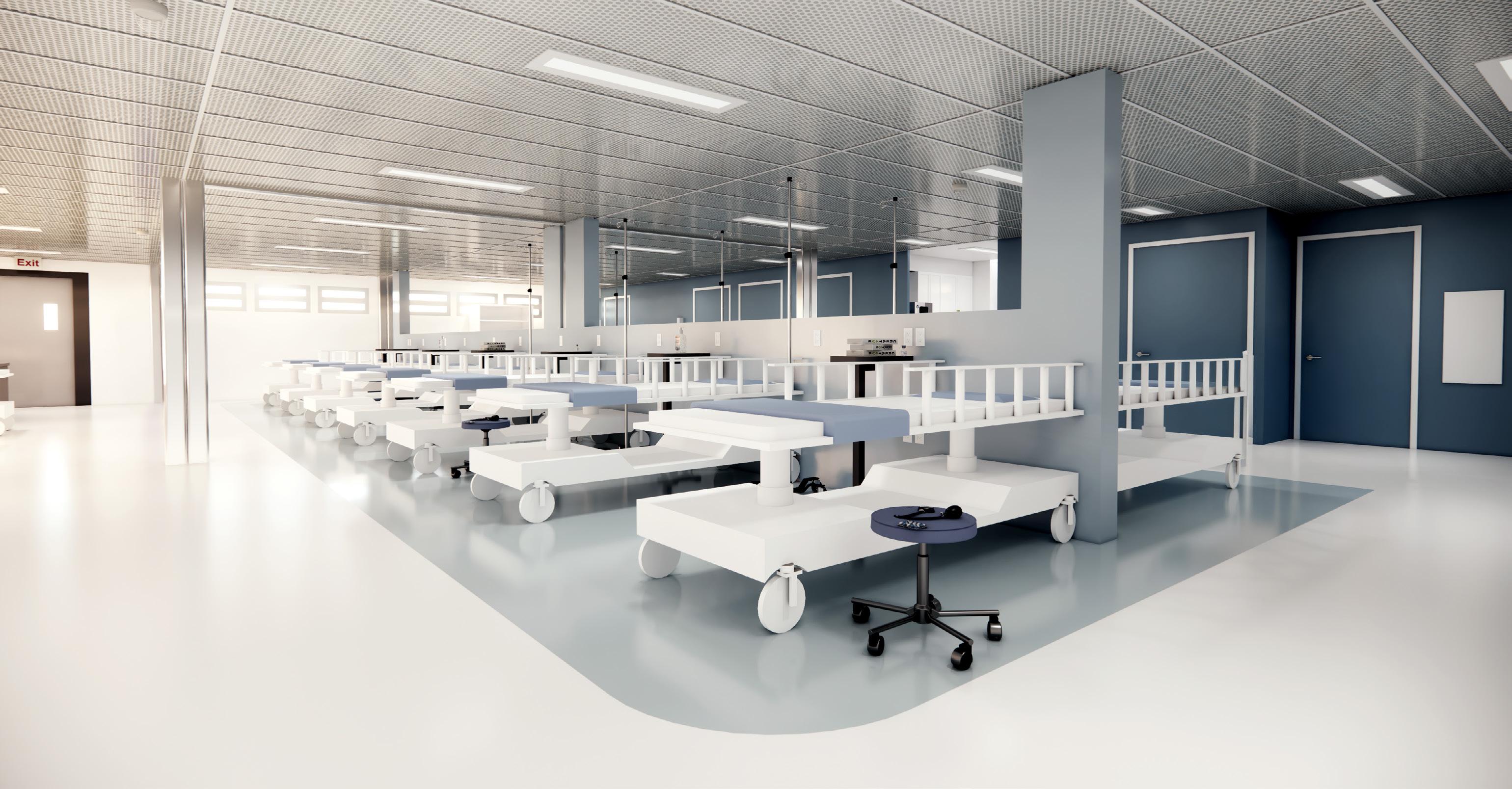 Lay said the goal is to “move care to the patients instead of patients to the care,” which also will lessen the burden of staff needed for long-distance transports. The modular medical centers strategically placed within secure perimeters of each facility will feature a full medical clinic; a state-of-the-art surgical suite