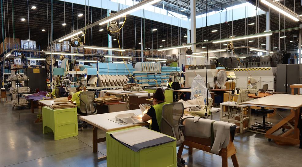 Approximately 90% of the electricity for the building and manufacturing processes comes from renewable energy sources including 3,444 rooftop photovoltaic solar panels and 22 foot “solar trees”.