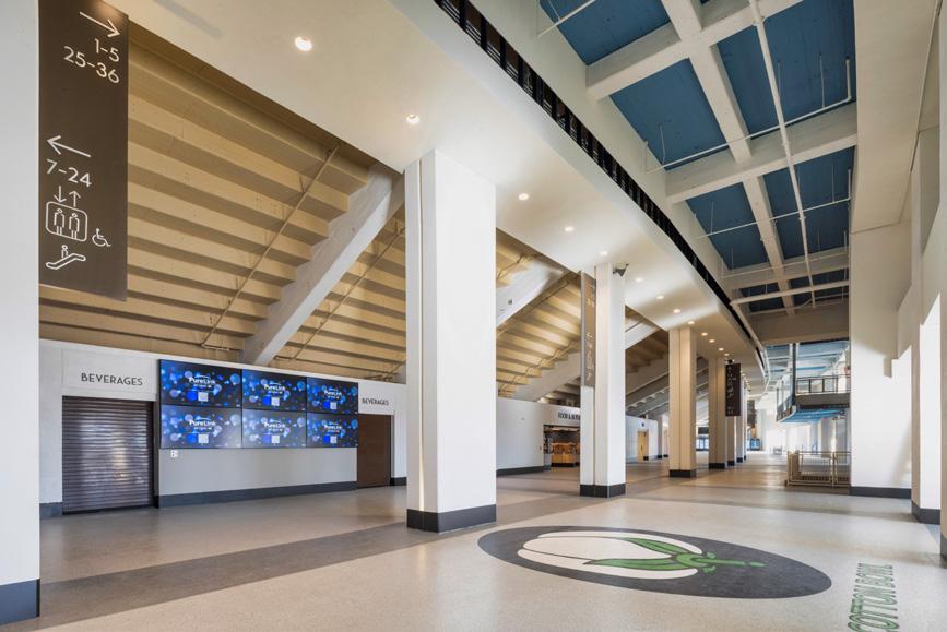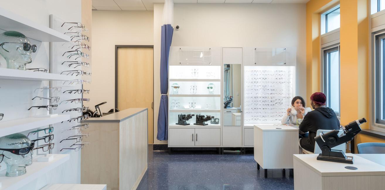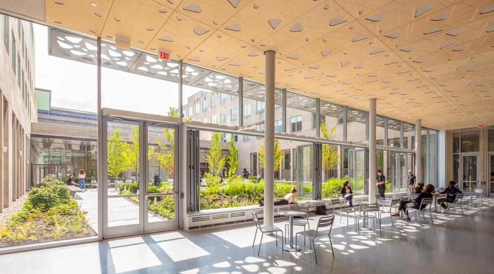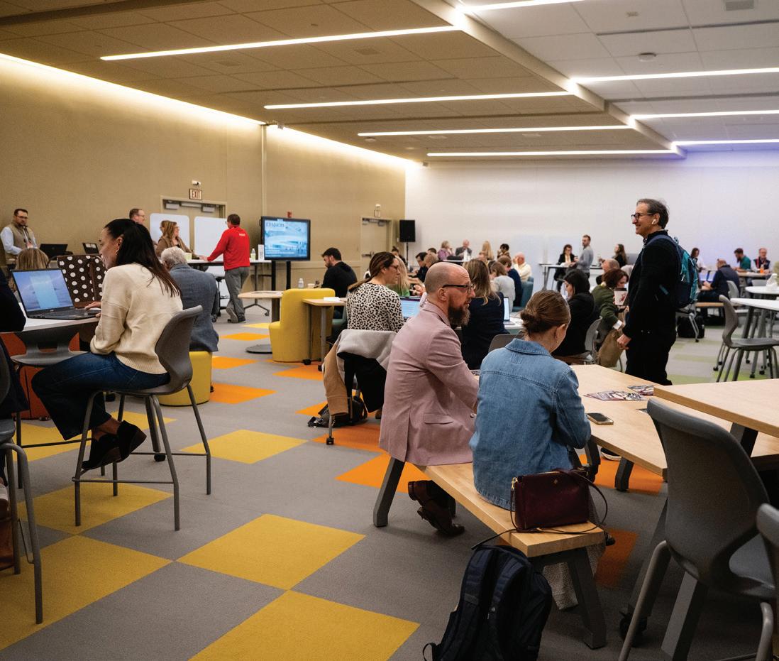 On the first floor, the trading lab displays real-time stock market changes through Bloomberg Technology terminals, giving students access to professionalgrade financial analytics typically reserved for working professionals. Sales classrooms include set-ups of real-world environments that students might encounter when making a sales pitch, blurring the line between academic exercise and professional practice. The most forward-thinking element might be the simulation lab, which uses augmented and virtual reality for marketing strategy exploration. The floor is deliberately furniture-free, allowing for fully immersive AR and VR experiences. It’s a space designed not for how students learn today, but for how they’ll need to learn tomorrow, and return to learn again years from now.