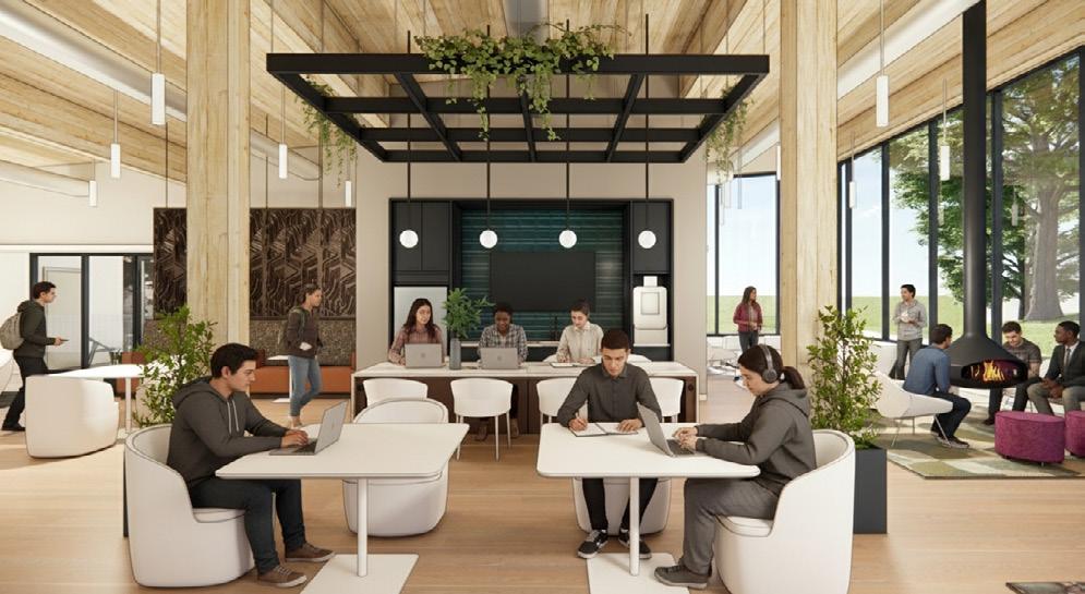heart of campus. The Commons combines social spaces, including food service venues that accommodate 900 guests, with library and student support services. It’s designed to serve both campus-based and commuter students, creating a destination that pulls people in rather than just providing study carrels.
